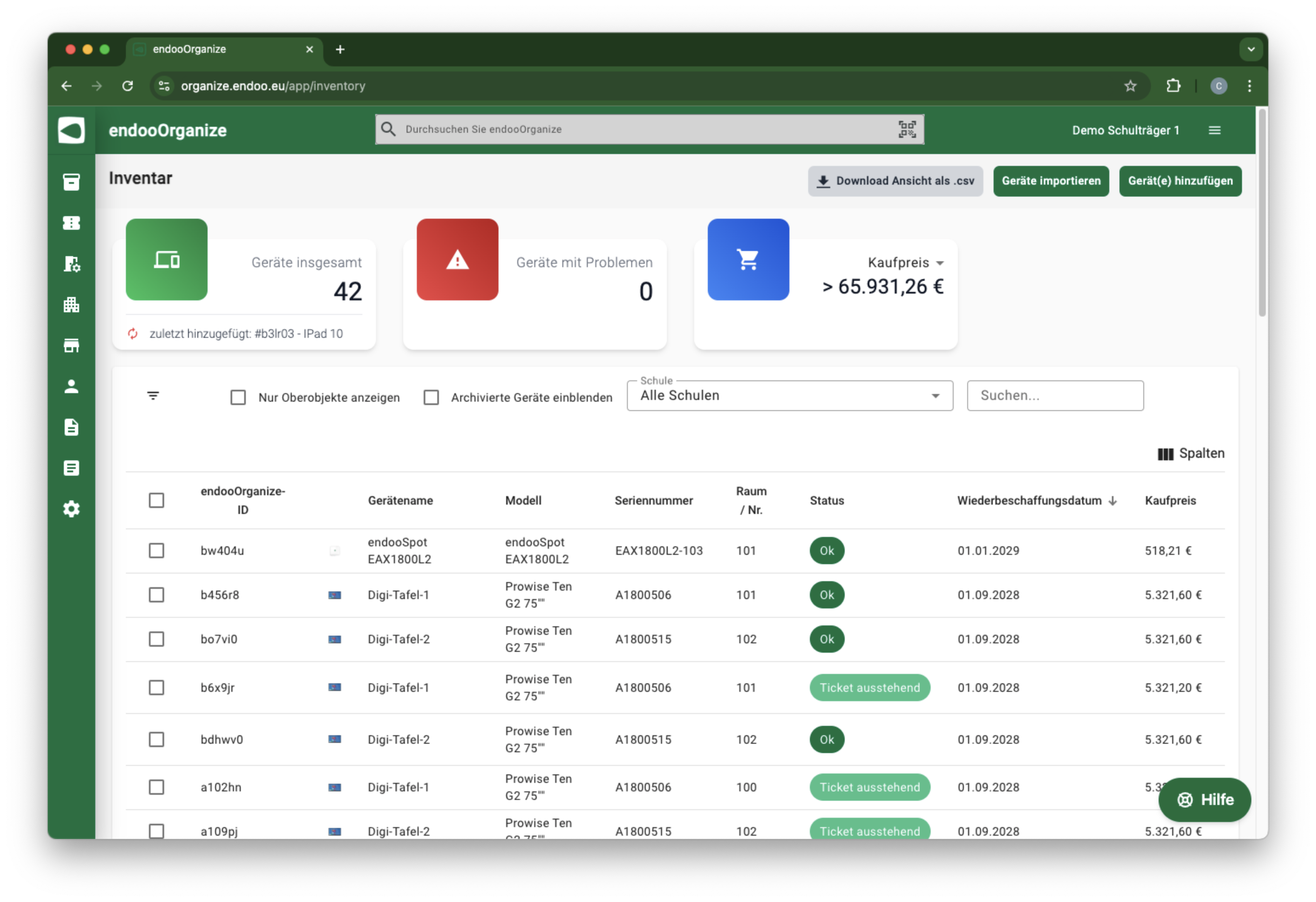 Mit endooOrganize das gesamte Schul-Inventar verwalten – vom technischen Equipment bis hin zu Software-Assets und mehr – einfach und präzise. Alle relevanten Informationen werden an einem Ort gebündelt, sodass Sie stets den Überblick behalten und effizient arbeiten können.