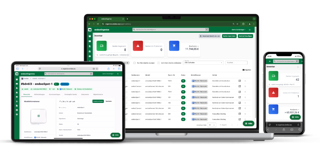 Egal ob IT-Administrator beim Schulträger, Medienverantwortlicher an einer Schule oder Schulleiter – Hören Sie auf Excel-Tabellen miteinander zu teilen und unstrukturierte E-Mails hin- und her zu schreiben. endooOrganize hilft Ihnen sich Ihren eigentlichen Aufgaben zuzuwenden!